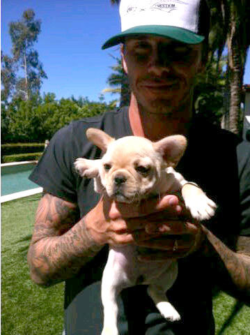 cRyan Gosling had his dog, George, in his arms at LAXVictotria Secret model and her dog Miranda Kerr’s FrankieEdward Norton and his Dog SadeyBig Ben Rothlisberger and his dog BentleyJessica Biel and her dog WilfredDavid Beckham and his dog OllieNovak Djokovic and his dog Pierre