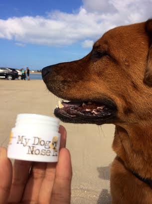 That being said- I am really excited about a new pet-industry product called My Dog Nose It. This sweet-smelling balm provides sun protection for your dog’s nose. After hearing about this product in industry releases the past several weeks, I finally got my hands on some for Jack. I receive a lot of packages in the mail from companies giving Jack the chance to try their product and share it with you guys. This package in particular had me grinning from ear to ear! Recently I have noticed that as Jack ages, the color complexion on his black nose has started to fade to a light brown and become patchy with light spots.