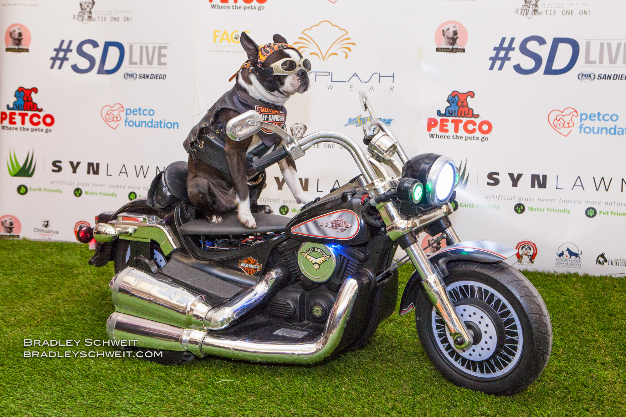 Meanwhile around 7:15PM on the Syn Lawn San Diego turf, the celebrities and famous pets took the “red carpet” for photos with guests, autographs, along with some Q&A for FOX Sports San Diego’s #SDLive. Our amazing line up of celebrity judges whom consisted of stars from professional sports and entertainment included Mike Costa, Maria Arcega- Dunn, Thomas Kesier, Geena the Latina, and Frankie V. I thank all five of the kind hearted celebrities for using their notoriety to shine light on the Barking Beast cause. To top it off, the runway show famous pets cameos included Chopper the Biker Dog, Speedy the Therapy Dog, Dozer the Surfing Dog, and the Ballistic Racers! Talk about a PARTY!