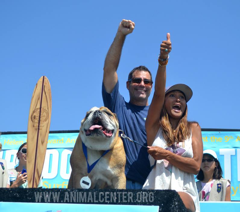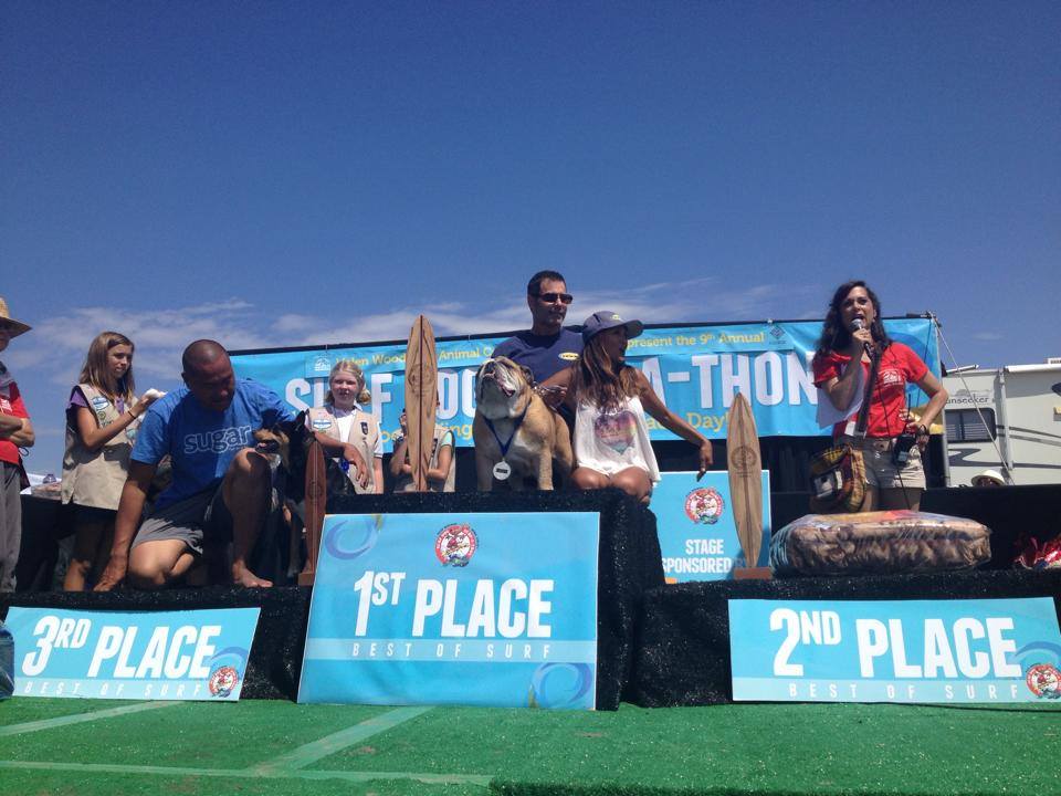 The Helen Woodward Animal Center Surf Dog Surf A Thon took place over the weekend in Del Mar, Ca. This year marks the 9th anniversary for the exciting event and the crowd, as was expected, turned out having double the spectators as last year. Over a dozen surfing dogs hung 20 competing for the coveted titles in 20 minute consecutive heats ranging according to dog size. A costume contest was hosted at this years event as well! After the finals winners were announced, an award ceremony was held to honor the four legged surfing athletes.