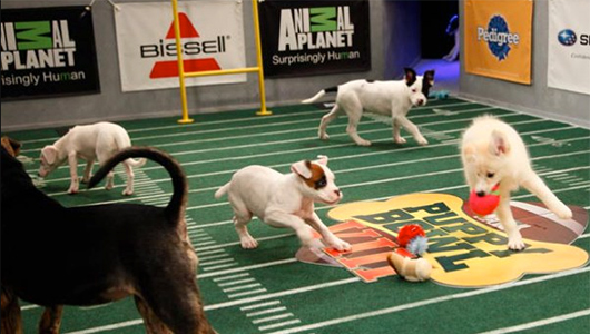 In case you have been living under a rock, and have not heard of the “Puppy Bowl,” it is an annual two-hour television program on Animal Planet that mimics the Super Bowl using puppies as football players. Shown on Super Bowl Sunday, the show consists of footage of a batch of puppies at play inside a model stadium, with commentary on their actions. The first Puppy Bowl was shown on February 6, 2005. The puppies featured in the Puppy Bowl are from shelters. The show contains information on how viewers can adopt rescued puppies and help their local shelter. They score touchdowns on a 10-by-19-foot gridiron carpet when they cross the goal line with a toy.